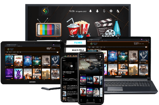 Nosso serviço funciona em vários dispositivos, Por exemplo, nosso serviço é acessível em diversos dispositivos, como Smart TV, TV Box, Computador, Stick, Celular, Tablet ou Vídeo Game. Basta ter um deles e uma conexão de internet. Se sua TV não for Smart, aí sim é necessário o uso de uma TV Box